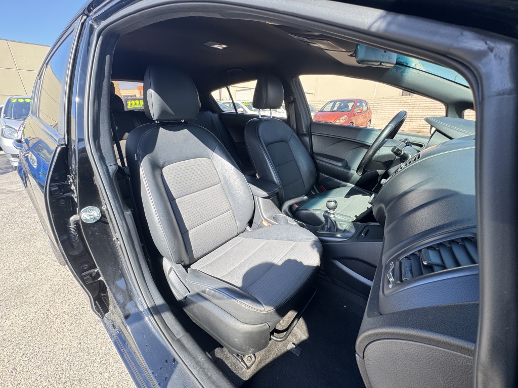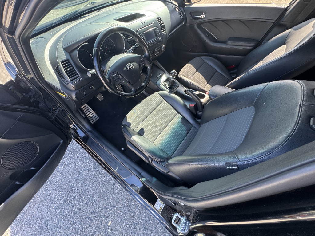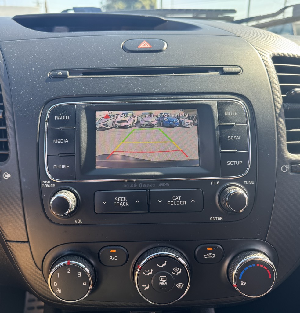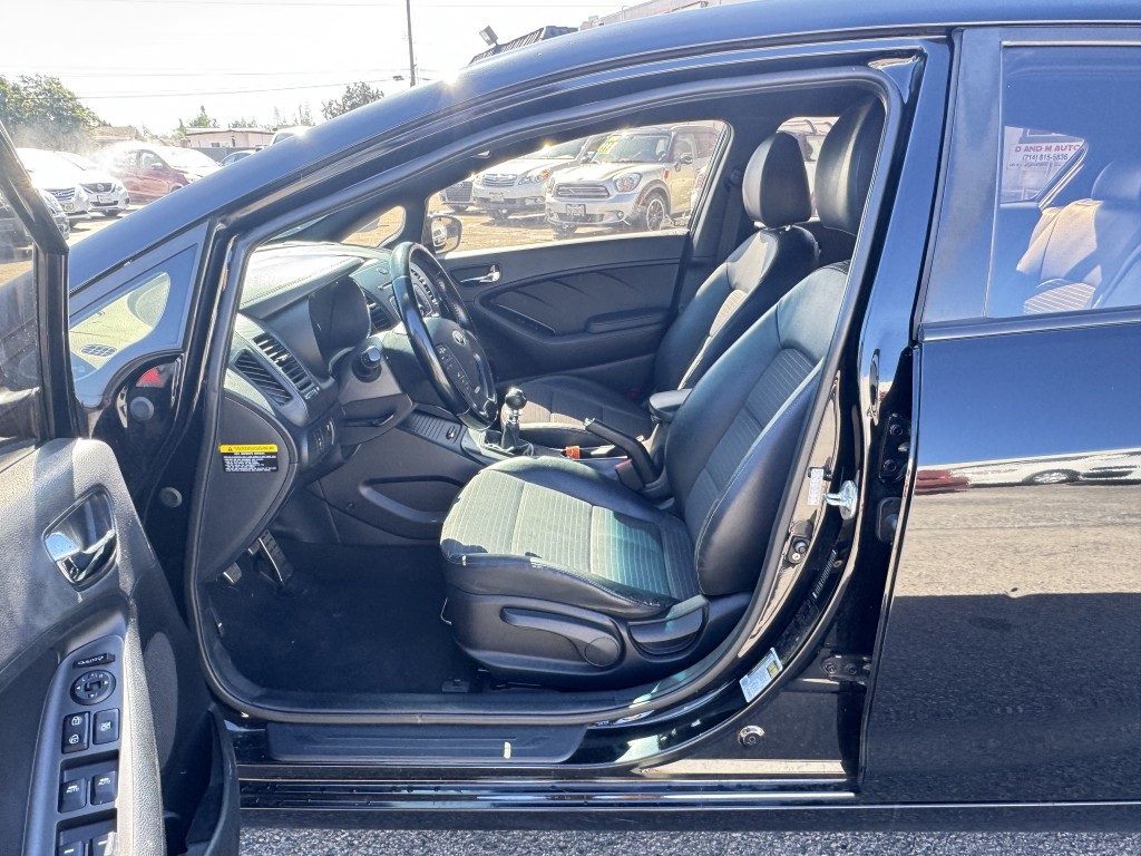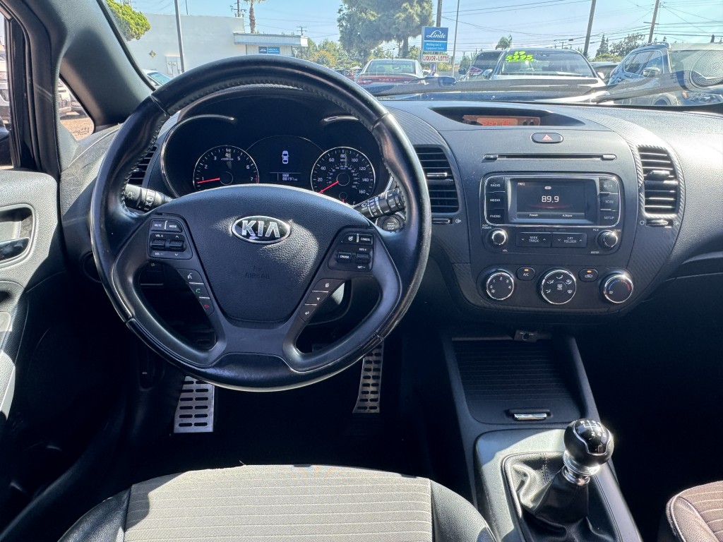 2016 Kia Forte SX in great condition with a 5-speed manual transmission and only two previous owners. Options include power locks, power windows, power mirrors, cruise control, a security system, alloy wheels, an AM/FM CD player, Bluetooth, a backup camera, and a push-to-start ignition. This vehicle has 88,191 miles, and the asking price is $6,995. If you are interested in a test drive, please call 714-815-5836 to check for vehicle availability or visit us at dandmauto.com.