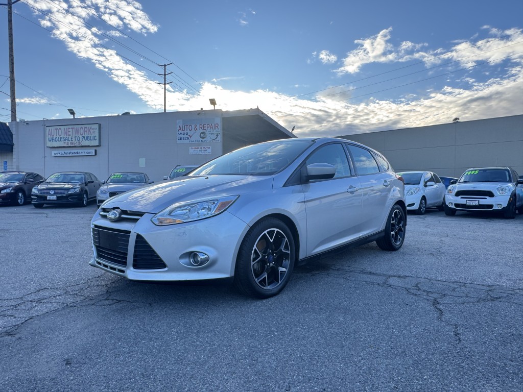 2012 Ford Focus SE with a clean Carfax and only two previous owners. This Focus is in excellent condition and gets 30 combined MPG. Options include power locks, power windows, power mirrors, leather seats, keyless entry, alloy wheels, a security system, Bluetooth, steering wheel controls, and an AM/FM CD player. This vehicle has 96,662 miles, and the asking price is $4,995. If you are interested in a test drive or have questions, please call 714-815-5836 or visit dandmauto.com to confirm availability.