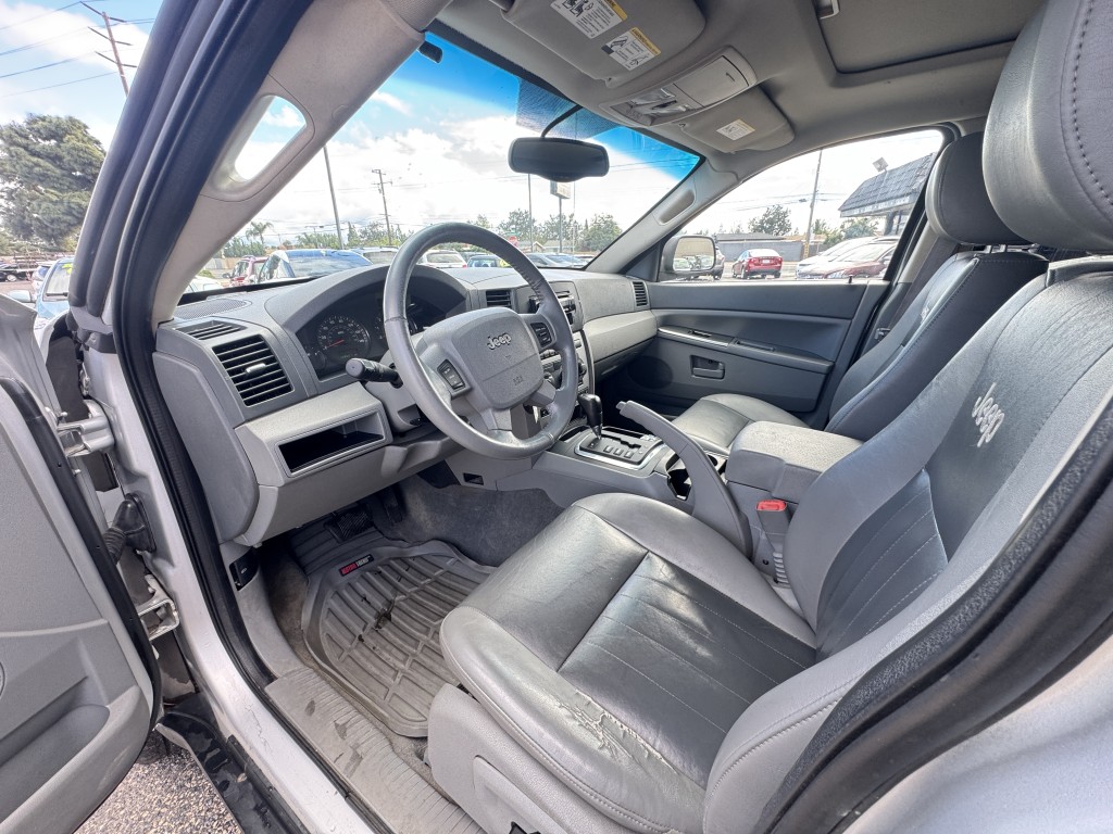 2005 Jeep Grand Cherokee Laredo with 27 service records and a 4x4 option. This Grand Cherokee Laredo is on lifted suspension and had its drive belts, serpentine belt, and serpentine belt tensioner replaced at 88,000 miles. Options include power locks, power windows, power mirrors, leather seats, heated seats, and alloy wheels. This vehicle has 128,601 miles and is priced at $4,995. If you are interested in a test drive or have questions, please call 714-815-5836 or visit dandmauto.com to confirm availability.