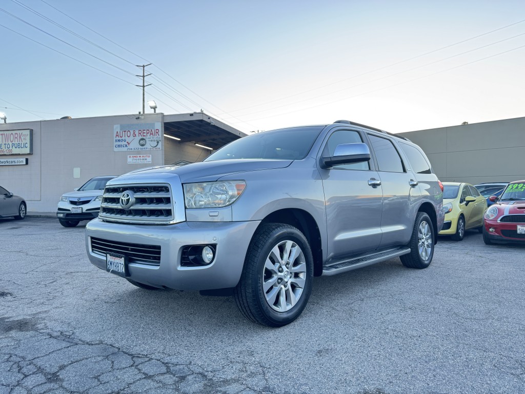 2010 Toyota Sequoia Limited with 31 service records and only three previous owners. This Sequoia is in excellent condition and has a 5.7L V8. Options include power locks, power windows, power mirrors, power seats, leather seats, heated seats, a backup camera, a security system, a sunroof, multi-zone climate control, third-row seating, navigation, cruise control, and keyless entry. This vehicle has 210,632 miles and is priced at $8,995. If you are interested in a test drive or have questions, please call 714-815-5836 or visit dandmauto.com to confirm availability.