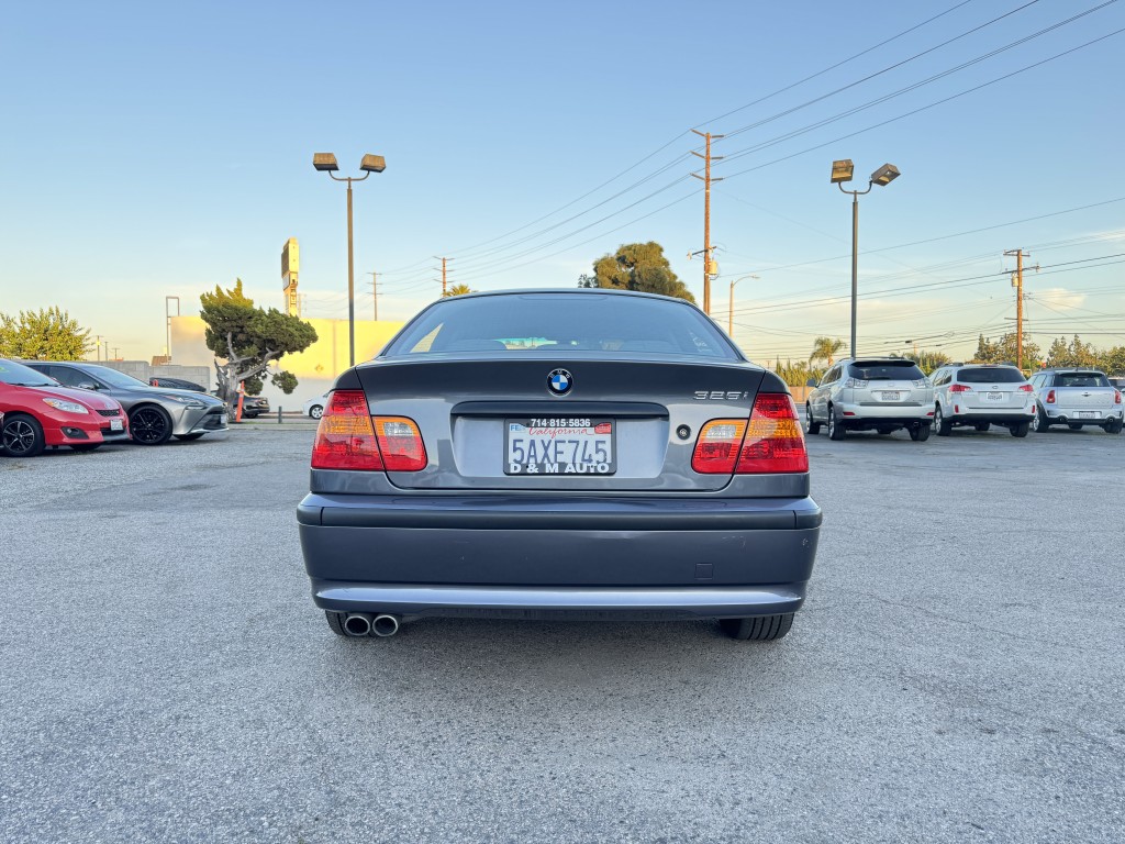 2003 BMW 3 Series 325i with very low mileage and only three previous owners. This 325i gets 30 combined MPG and is the non-turbo model, making it an economical and reliable compact sedan. Options include power locks, power windows, power mirrors, keyless entry, cruise control, a security system, an AM/FM CD player, alloy wheels, steering wheel controls, Bluetooth, a sunroof, and leather seats. This vehicle has 72,706 miles and is priced at $5,495. If you are interested in a test drive or have questions, please call 714-815-5836 or visit dandmauto.com to confirm availability.